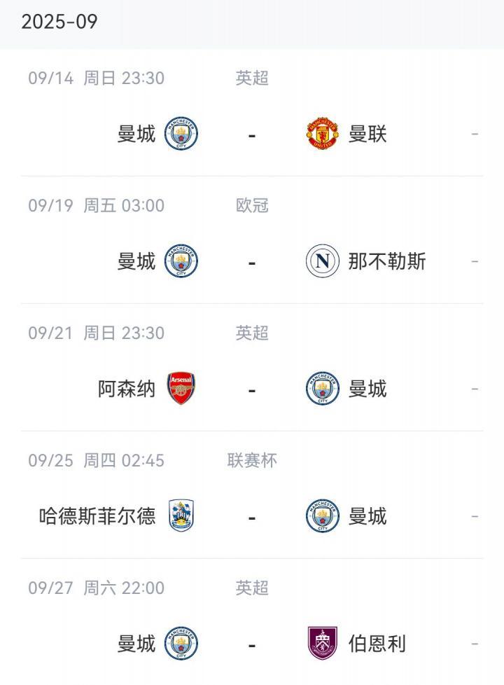 曼城后续赛程↓