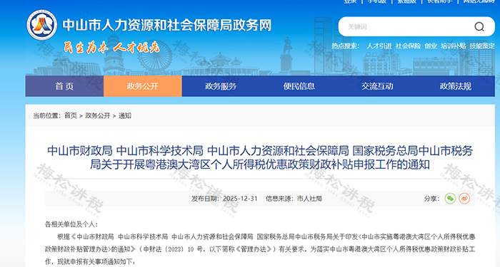 同时符合《管理办法》第八条规定及中山市境外高端紧缺人才目录(详见附件1)条件的中山市境外高端人才、境外紧缺人才,可申请2023纳税年度的个人所得税财政补贴。