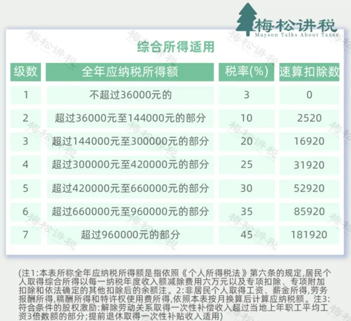 三、 综合所得税率表(个税汇算清缴时适用)
