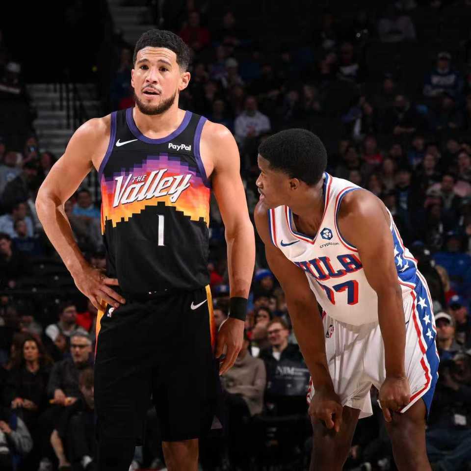 次节比赛,太阳进攻火力提升首次单节30分,且限制76人首次单节不足25分。太阳被拉开29-34落后,太阳内外开花一波12-2攻势反超5分,76人回敬一波7-0攻势夺回领先。太阳内外开花重新以46-45反超比分,双方之后持续紧咬比分缠斗至53-53,太阳连得4分,太阳单节30-23净胜7分,上半场结束太阳57-53反超76人。前两节比赛,太阳三分15中6,布克13分与伊戈达罗10分;76人三分20中6,埃奇库姆12分与乌布雷16分。