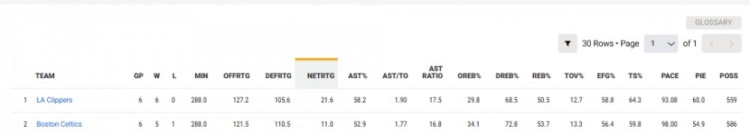 过去六战,快船打出了联盟独一档的优异表现,与他们最接近的球队是下一场的对手凯尔特人,而两队的百回合净胜分差高达10分以上。
