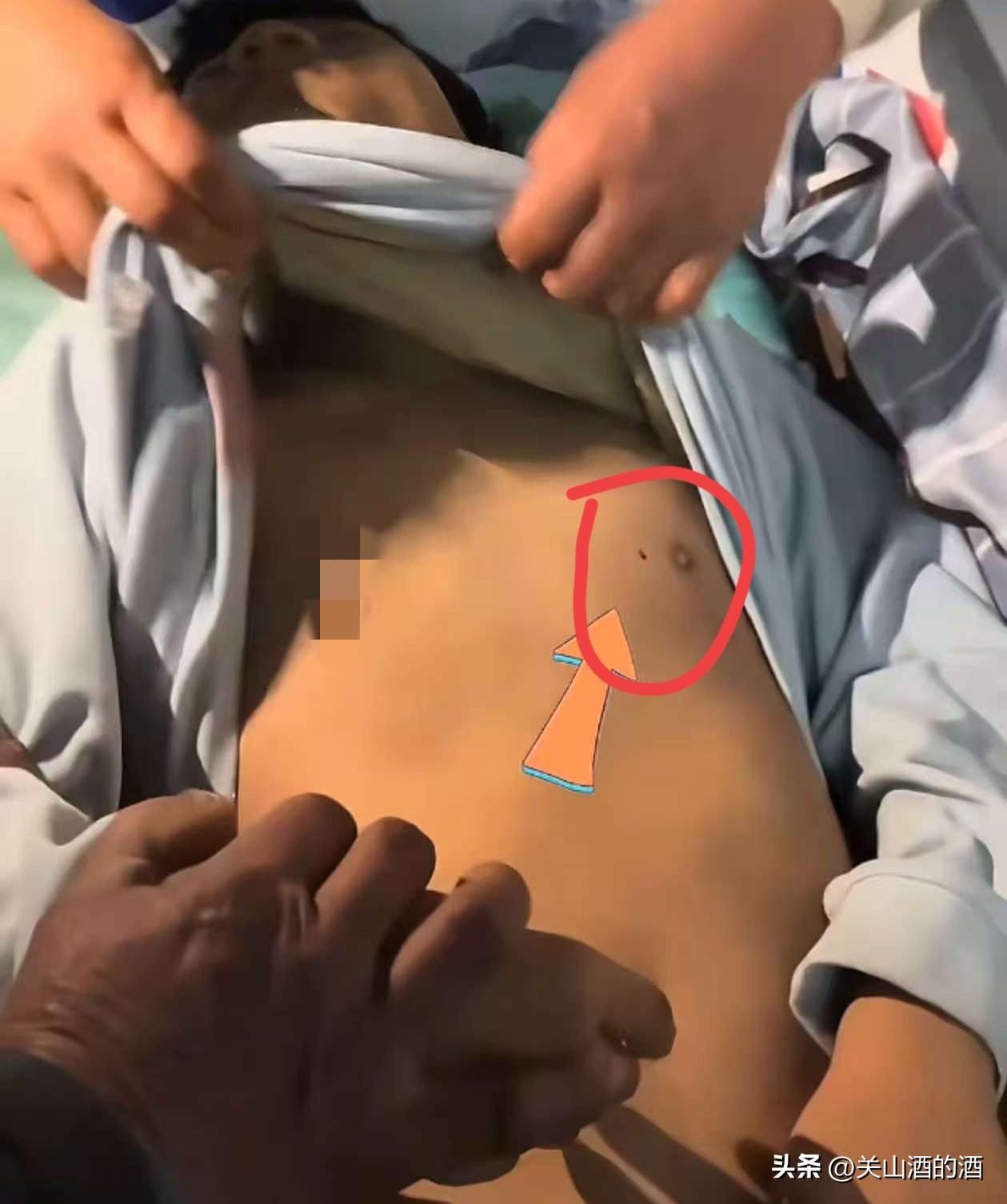 不过实际情况孩子嘴角还有血,身体是软的、左胸有个很大很粗的针孔。